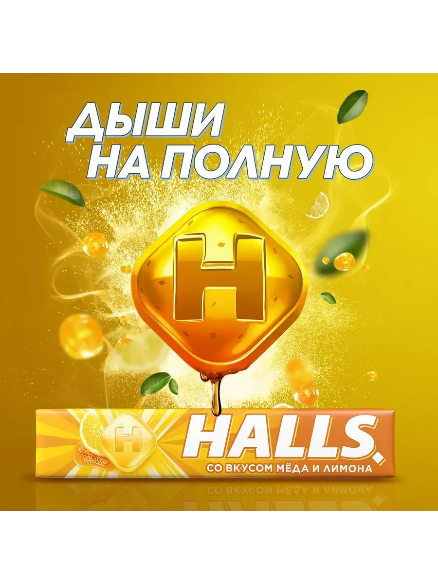 Леденцы Halls со вкусом меда и лимона, 25 г лавина свежести и традиционный микс вкусов в новом формате. Сладкие леденцы с легкой кислинкой смягчают горло, помогают при кашле, а также освежают дыхание благодаря входящему в состав ментоловому маслу. Натуральный мед является богатым источником витаминов и важнейших микроэлементов. Леденцы изготовлены на основе натуральных компонентов без применения искусственных красителей и консервантов. В пачке 9 пастилок, каждая из которых имеет индивидуальную упаковку.