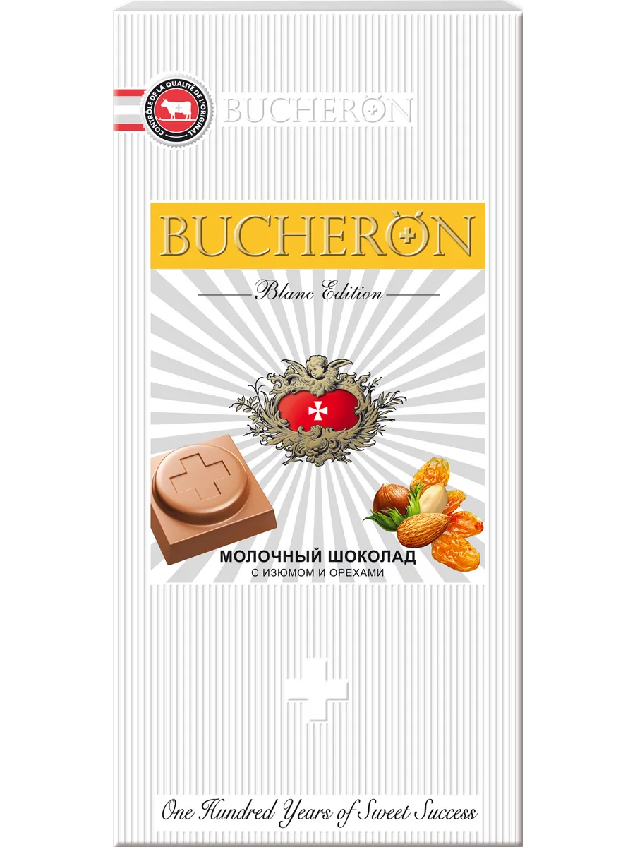 Шоколад BUCHERON молочный с изюмом и орехами 85г.