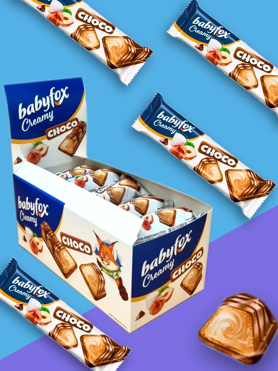 Легкий вафельный батончик бэби фокс креми чоко, покрытый молочным шоколадом, с нежной, моментально тающей во рту молочно-ореховой начинкой на основе фундучной пасты. Батончик baby fox roxy creamy choco вафельный с завораживающим сочетанием вкусов и текстур: хрустящая вафля, кремовая начинка, бархатистый молочный шоколад из отборных какао-бобов и цельного сухого молока. Babyfox Creamy Рокси – отличный источник энергии для маленьких непосед и тех, кто постарше! Батончик удобно взять на занятия или на прогулку, чтобы порадовать себя любимым лакомством. Легкая хрустящая вафелька бэби фокс, наполненная нежной, моментально тающей во рту молочно-ореховой начинкой на основе фундучной пасты. Донышко батончика покрыто молочным шоколадом из отборных какао-бобов. Вафельный батончик Babyfox Creamy ореховый – уникальное сочетание вкусов и текстур. – Настоящий молочный шоколад baby fox вафельный. – Настоящая паста из фундука. – Настоящее удовольствие!